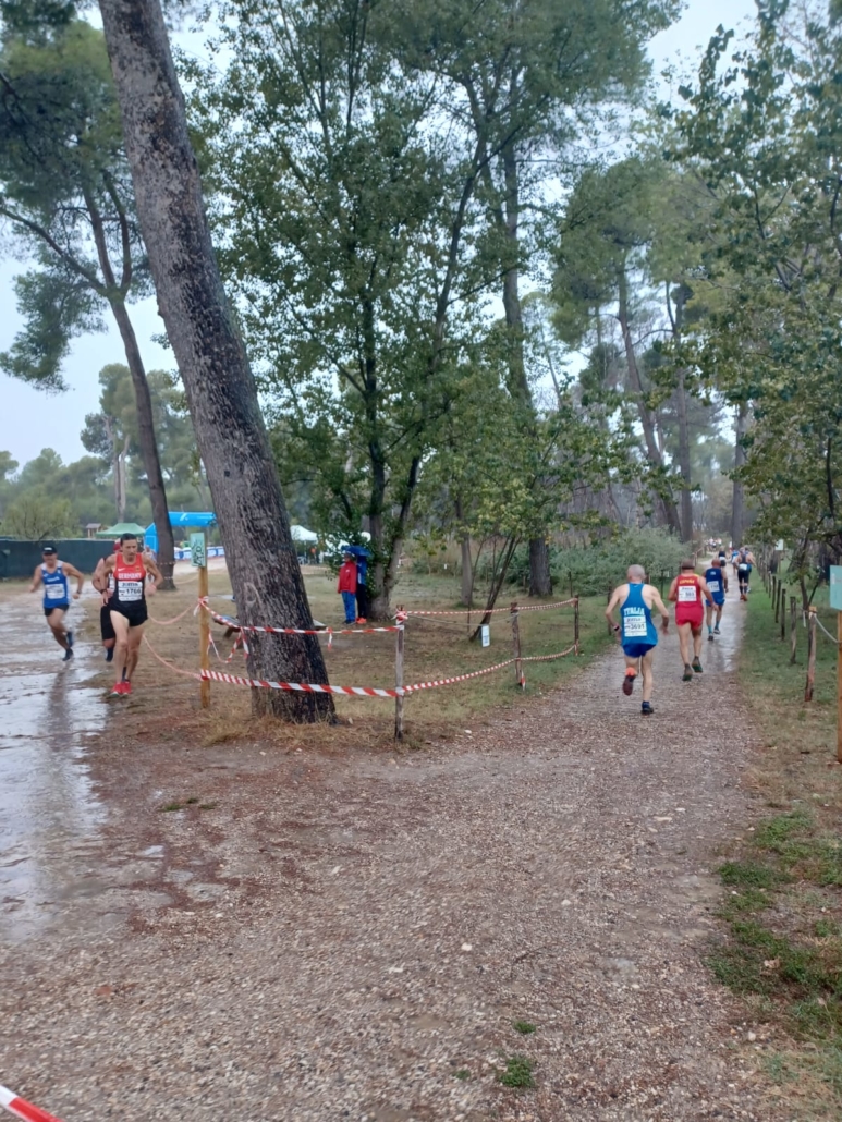 Drei Tage später stieg dann der 62 jährige Graml auch ins Wettkampfgeschehen ein. Lang und Graml starteten beim Country Cross über gut 7 km. Kurz vor dem Start setzte starker Regen, der das ganze Rennen anhielt, ein und die Laufstrecke, die zwar ziemlich eben war, war mit großen Pfützen übersät und nicht einfach. Lang belegte in der M40 mit einer Zeit von 24:59 den achten Platz und kam auf den vierten Platz in der Mannschaftswertung, Graml belegte bei der starken Konkurrenz in einer Zeit von 31:49 nur einen 30. Platz in der AK60, schaffte jedoch als drittbester Deutscher den Sprung in die Mannschaft und wurde mit dem Team sechster.